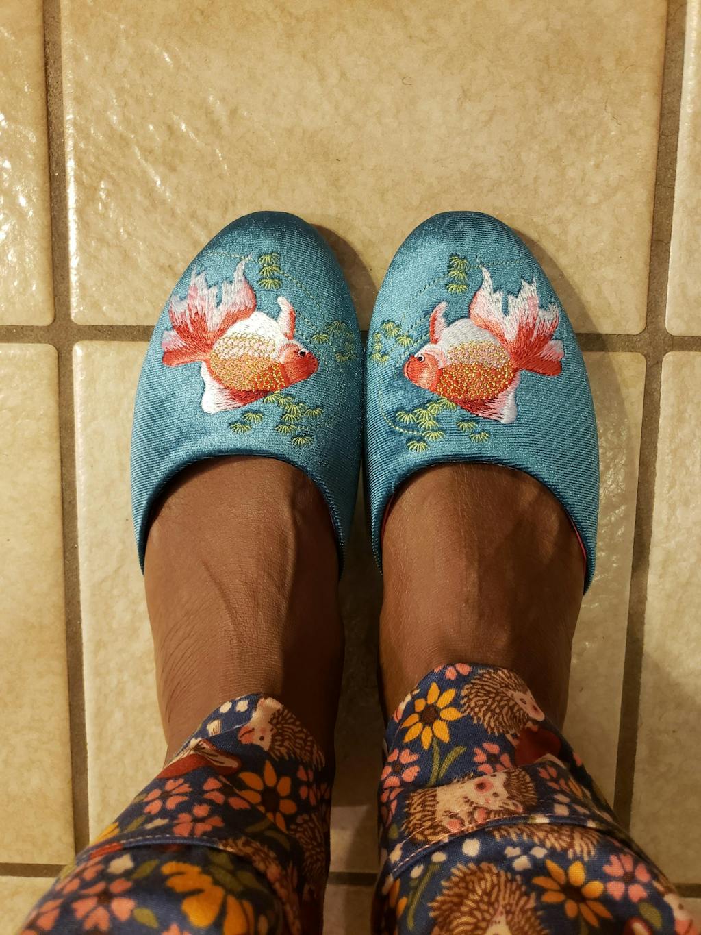 Step into elegance with these handcrafted velvet mules, featuring a whimsical goldfish embroidery that brings charm and character to every step. Designed for the modern muse, this pair blends artful design with everyday comfort — perfect for elevating both casual and dressy looks.